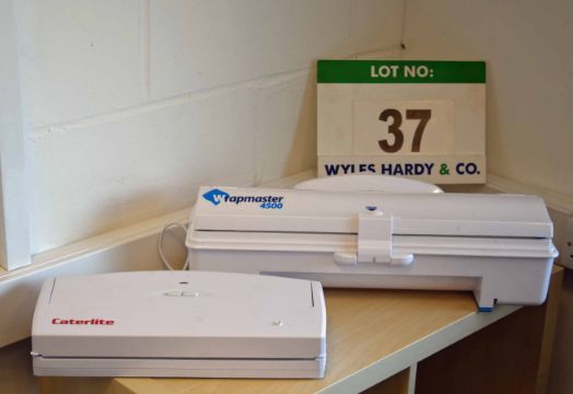 A CATERLITE DM065 Light Duty Benchtop Vacuum Packing Machine and A WRAPMASTER 4500 Benchtop Shrinkwrap Dispenser