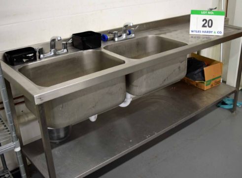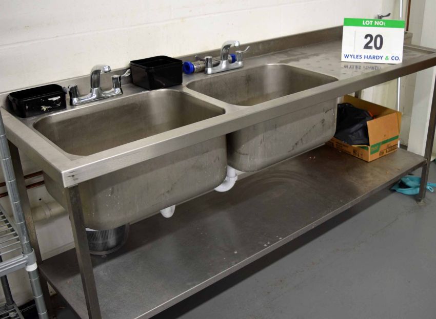 A 2100mm x 680mm Twin Bowl Commercial Free Standing Sink Unit with Single Right Hand Draining Area and fitted Lower Shelf