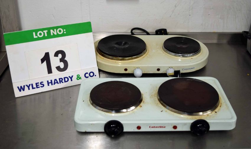 A CATERLITE Benchtop Twin Electric Hot Plate and a COOKWORKS Benchtop Twin Electric Hotplate