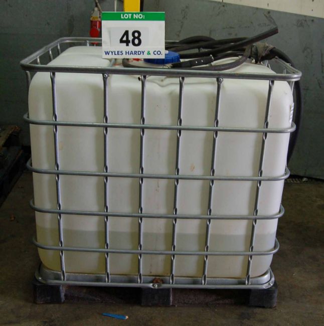 An IBC Container (1000-Litre capacity) with Approx. 200-Litres of GREENOX Adblue for SCR Vehicles (DPN 70070, ISO 22241) with Hose and Nozzle