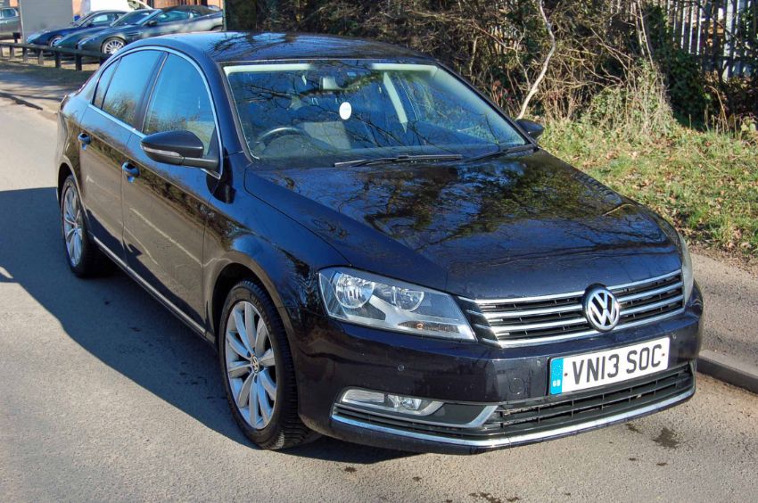 A VOLKSWAGEN Passat Highline 2.0 TDI Diesel Saloon, Registration No. VN13 SOC (2013), First Registered: 28-05-2013, Recorded Mileage: 129882, MOT Expires: 27-05-2019, Colour: Black, Service History: Present at 106293 25-10-2017, fitted with: CD Radio, Satellite Navigation, Electric Windows and Mirrors, Multi-Function Steering Wheel, Rear Parking Sensors, 6-Speed Manual Gearbox, Black Cloth Trim, Alloy Wheels, Keys: Two Remotes Present, Cosmetic Damage to Paintwork and Alloys, V5 and Service Book Not Present (Vehicle located at Wyles Hardy & Co., Bovingdon, HP3 0NW, Viewing Recommended)
