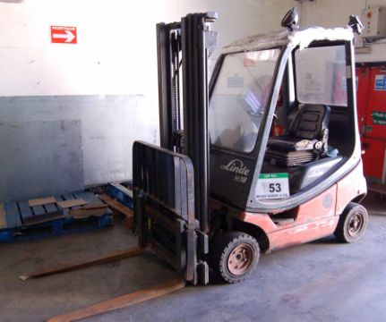 A LINDE H18T 1800Kg capacity LPG Gas Forklift Truck, Serial No. H2X350S02358, with Triplex Mast, Side Shift and Open Safety Cab, 8003 Recorded Hours (Note Battery required)