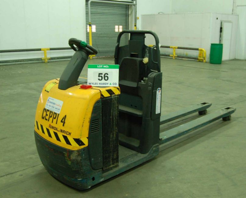 A JUNGHEINRICH ECE225 Battery Electric 2500Kg capacity Ride-On Order Picker Truck with 2M Long Forks and Battery Charging Unit (NOTE: Hard Wired Charging Unit needs a Method Statement, a Risk Assessment and a Qualified Electrician before removal of this lot)
