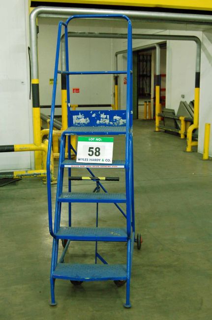 A Blue Steel 5-Tread Mobile Safety Steps, 1.2M Platform Height
