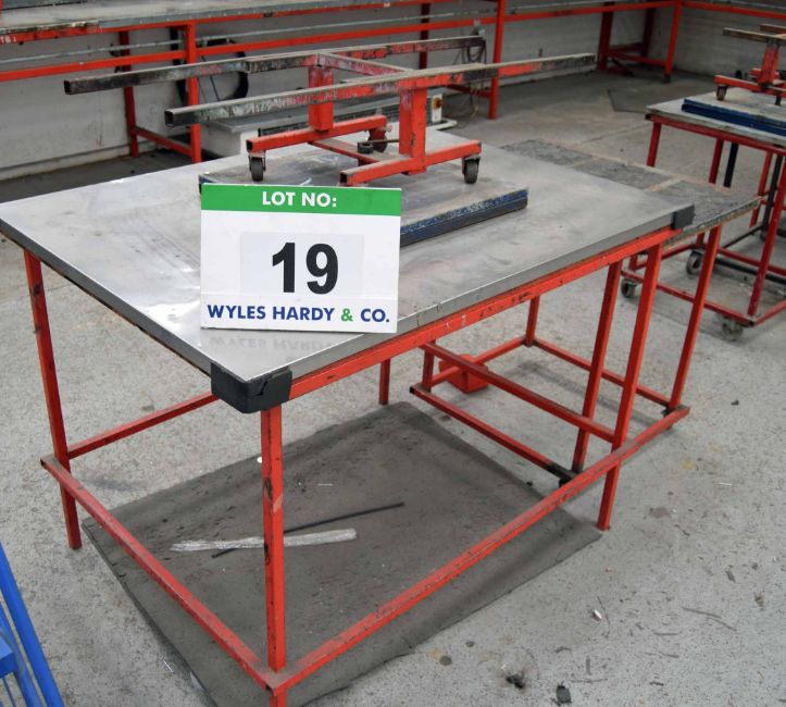 A Welded Steel Assembly Table with Rotating Workpiece Jig and Side Table (As Photographed)