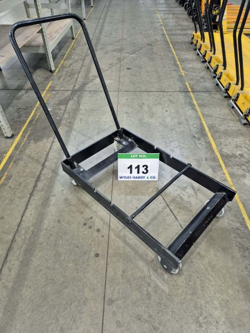 An Unbranded Black Steel Framed Manual Pedestrian Paper Roll Transportation Trolley