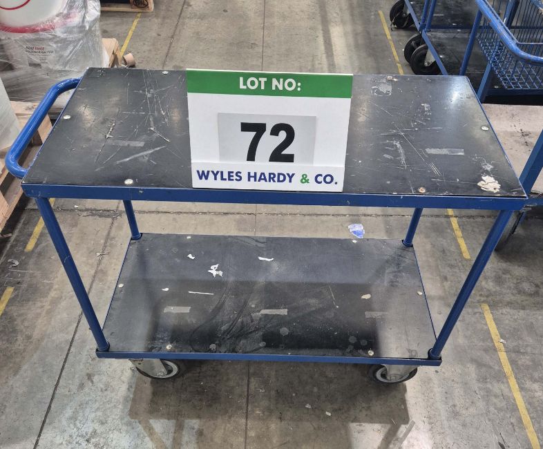 A Blue Steel Framed 2-Tier Trolley, 840mm tall x 500mm wide x 1000mm long with fitted Two Steering Castors