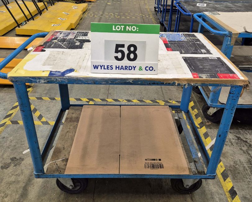 A VINK LISSE 500Kg capacity 2-Tier Blue Steel Framed Trolley, 900mm tall x 700mm wide x 1050mm long with fitted Two Steering Castors