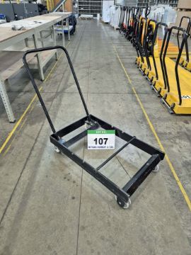 An Unbranded Black Steel Framed Manual Pedestrian Paper Roll Transportation Trolley