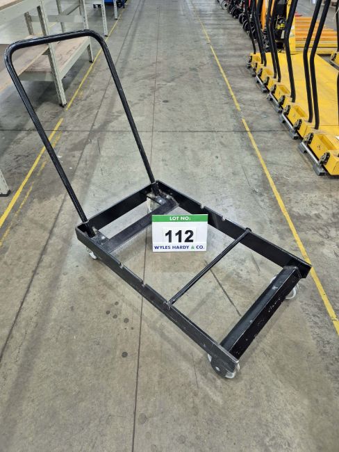 An Unbranded Black Steel Framed Manual Pedestrian Paper Roll Transportation Trolley