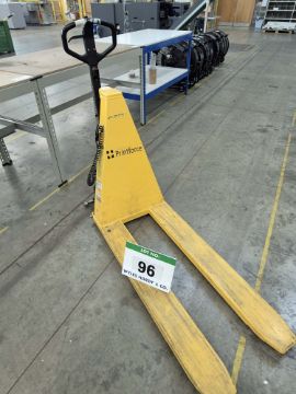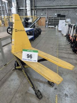 A VLIET LIFT 1000Kg capacity Manual Hydraulic Hi-Lift Pedestrian Pallet Truck, max. Fork height 800mm, N.B. This Pallet Truck has Electric Lift fitted but not currently working/requires repair
